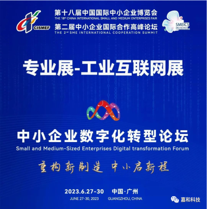 2023第十八屆中國國際中小企業博覽會于6月27日-30日在廣州(中國進出口商品交易會展館A區)舉辦。中博會2023.06.27-30昆明嘉和科技股份有限公司受...