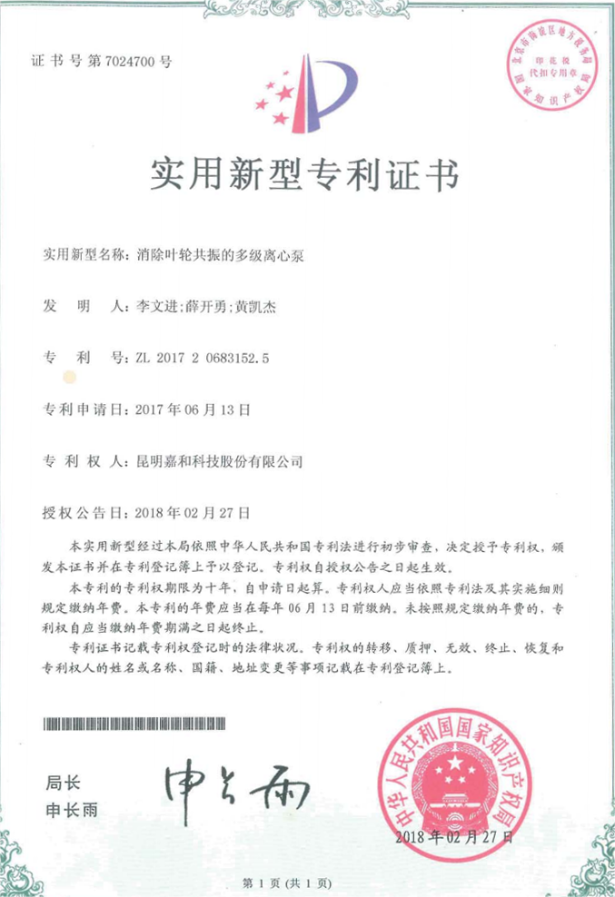 消除葉輪共振的多級離心泵