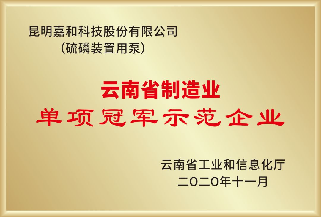 云南省制造業單項冠軍示范企業