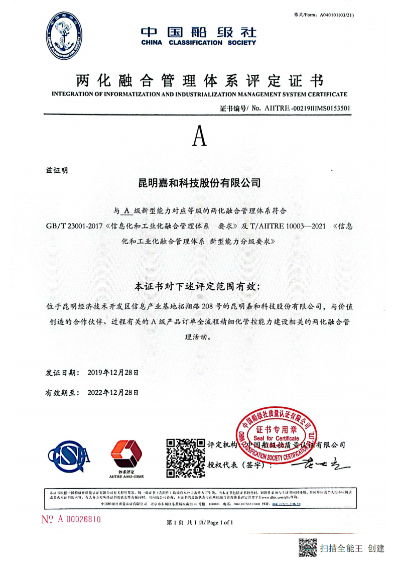 兩化融合證書