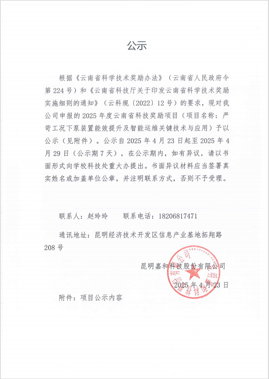昆明嘉和科技股份有限公司
