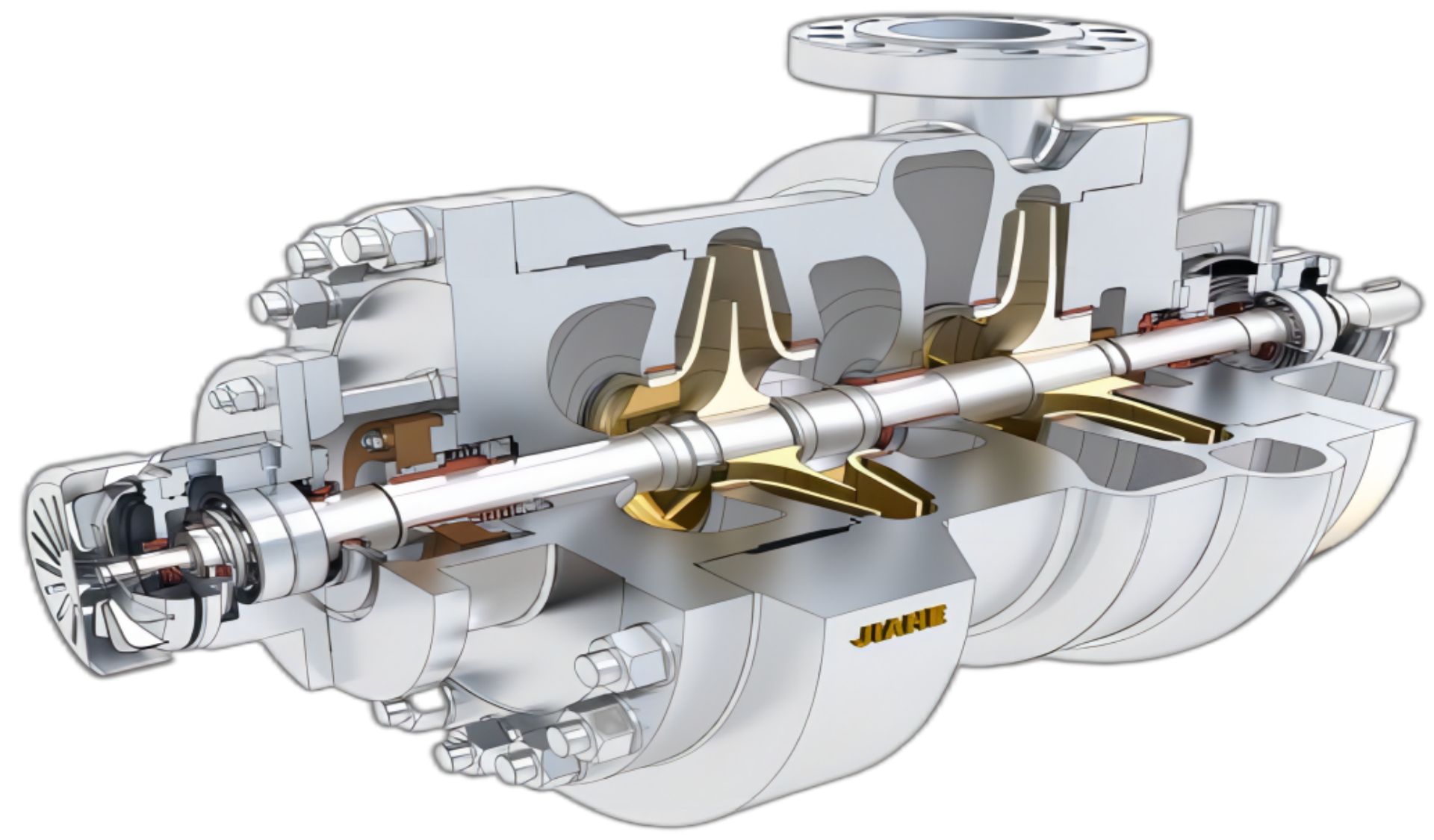 JHBB/JHBD 系列為兩級、徑向剖分兩端支承離心泵。符合 API610-11th 標準。JHBB 為首級單吸,JHBD 為 首級雙吸。進出口法蘭尺寸滿足 ANSI 或 ISO 標準。密封腔的設計符合 ISO21049/API682 密封標準 , 適合安裝 集裝式單封、有壓串封或無壓串封。沖洗、冷卻、加熱、急冷和緩沖液管路的連接符合 API 方案。